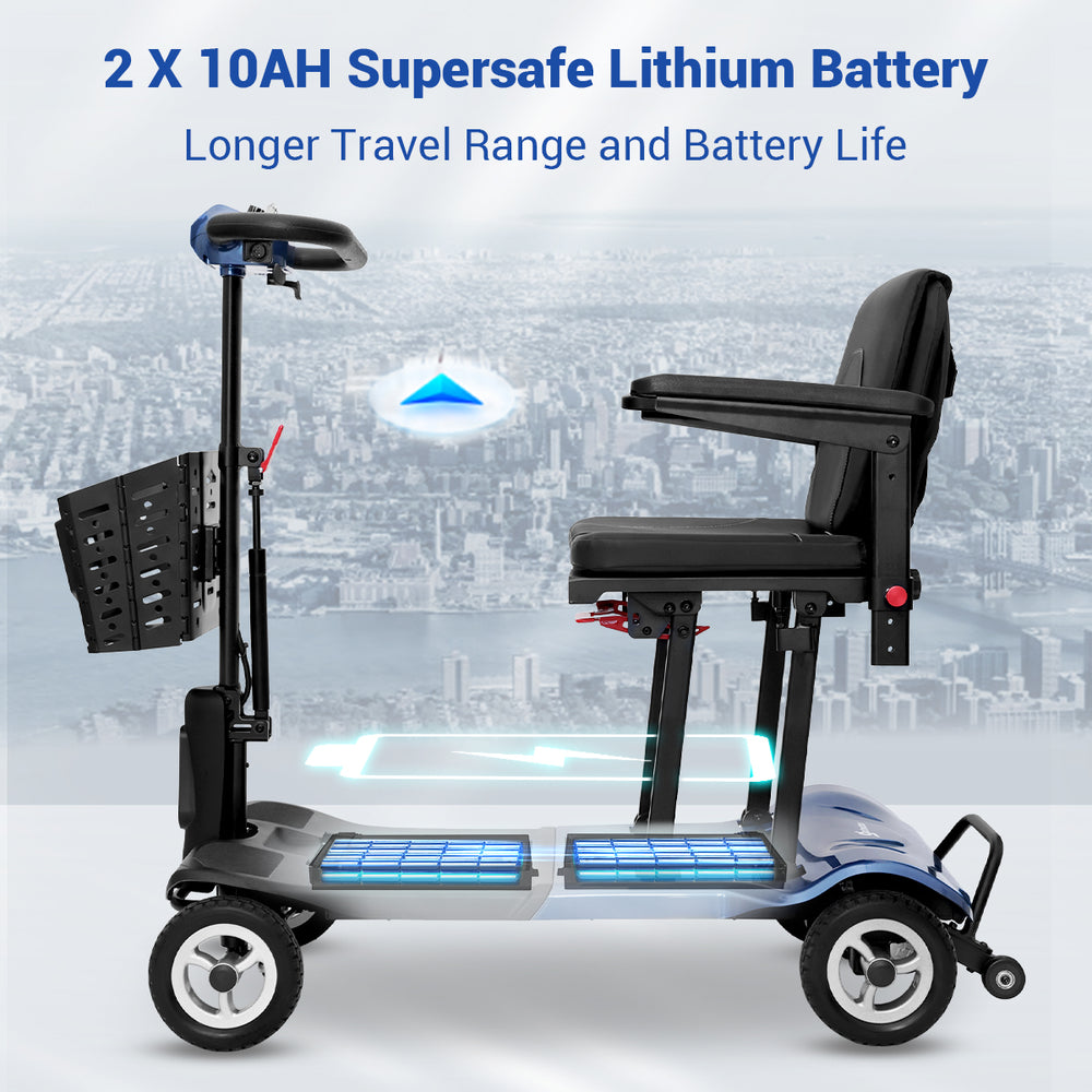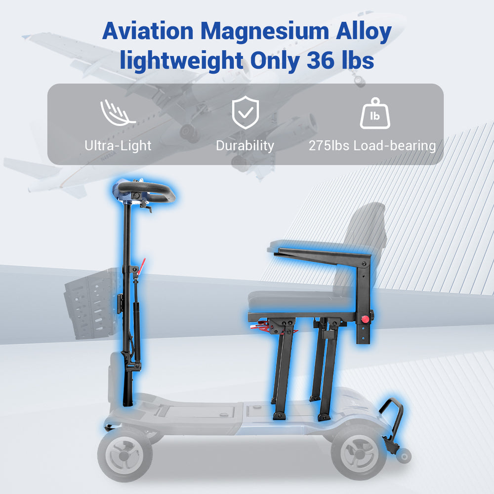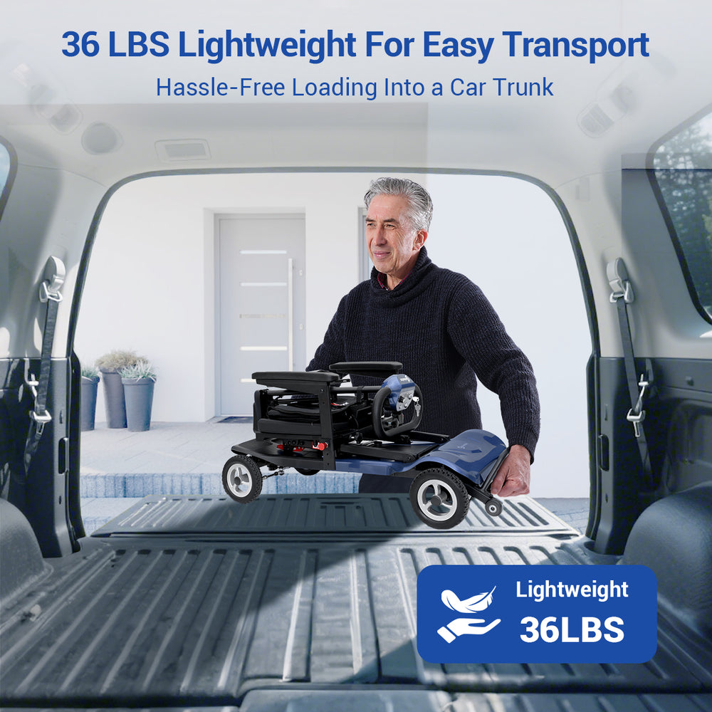 Built for everyday convenience, this mobility scooter weighs only 36 lbs, making it easy to lift, load, and take anywhere. It includes two battery packs, offering reliable power for daily errands and outdoor trips without worrying about running out of charge.