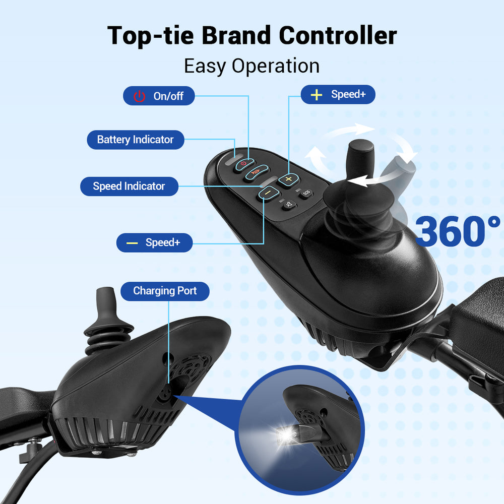 Go up to 15 miles on a single charge! The high-capacity lithium battery is fully removable for easy indoor charging, eliminating the hassle of moving the entire chair. Perfect for errands, park visits, or community outings.