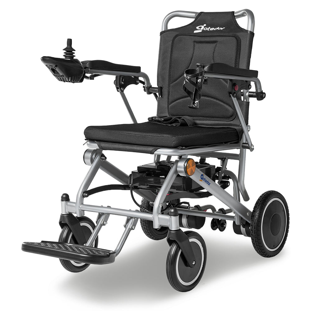 Weighing only 39 lbs, this aluminum electric wheelchair gives seniors the freedom to move independently. Caregivers will also appreciate its effortless lifting and transport. With a robust 350 lb weight capacity, it combines convenience and reliable performance for daily life.
