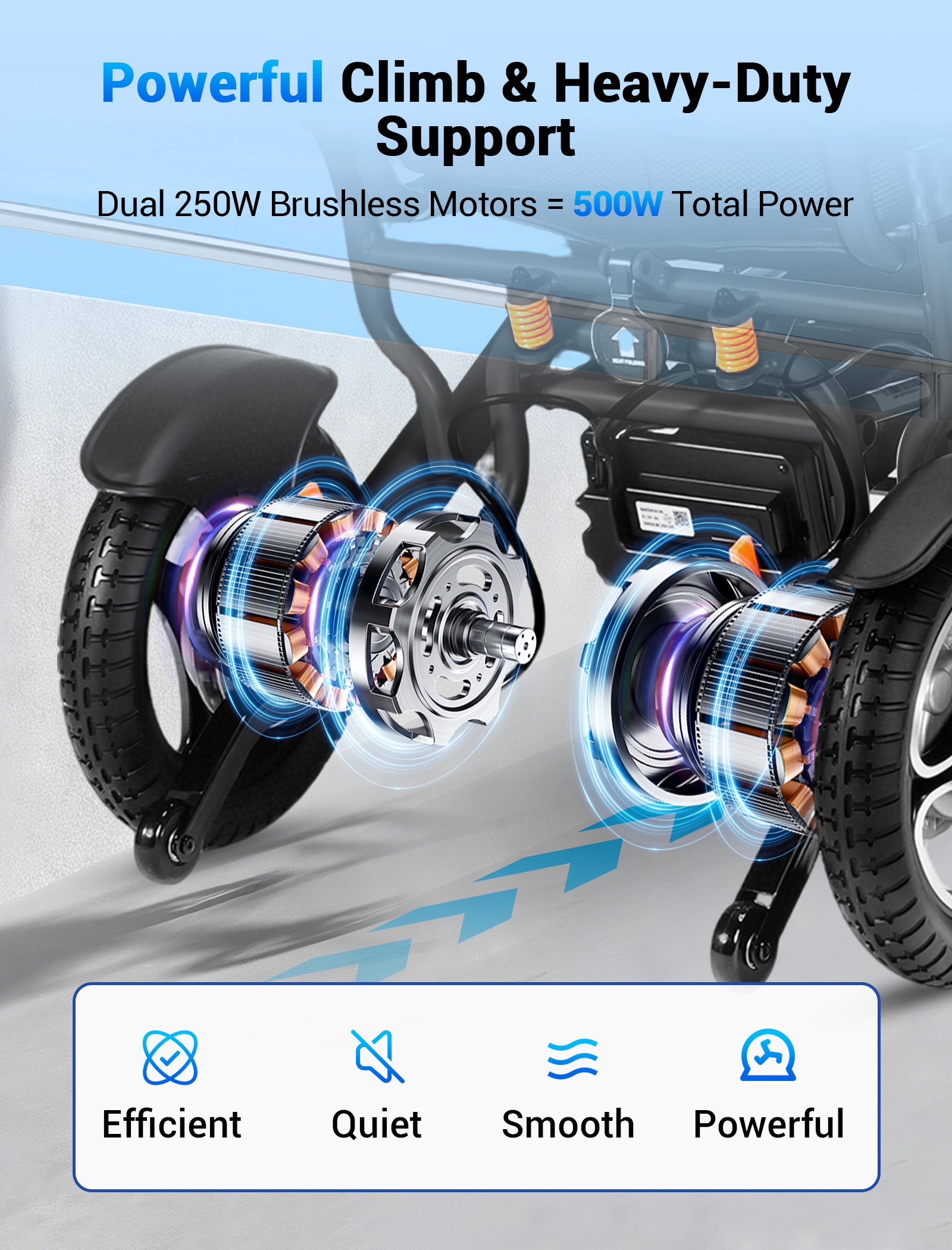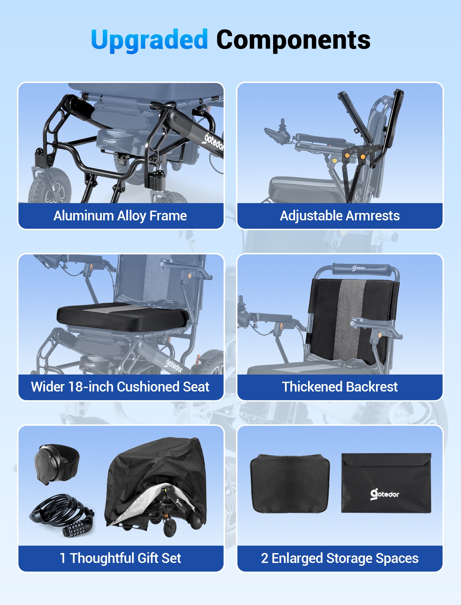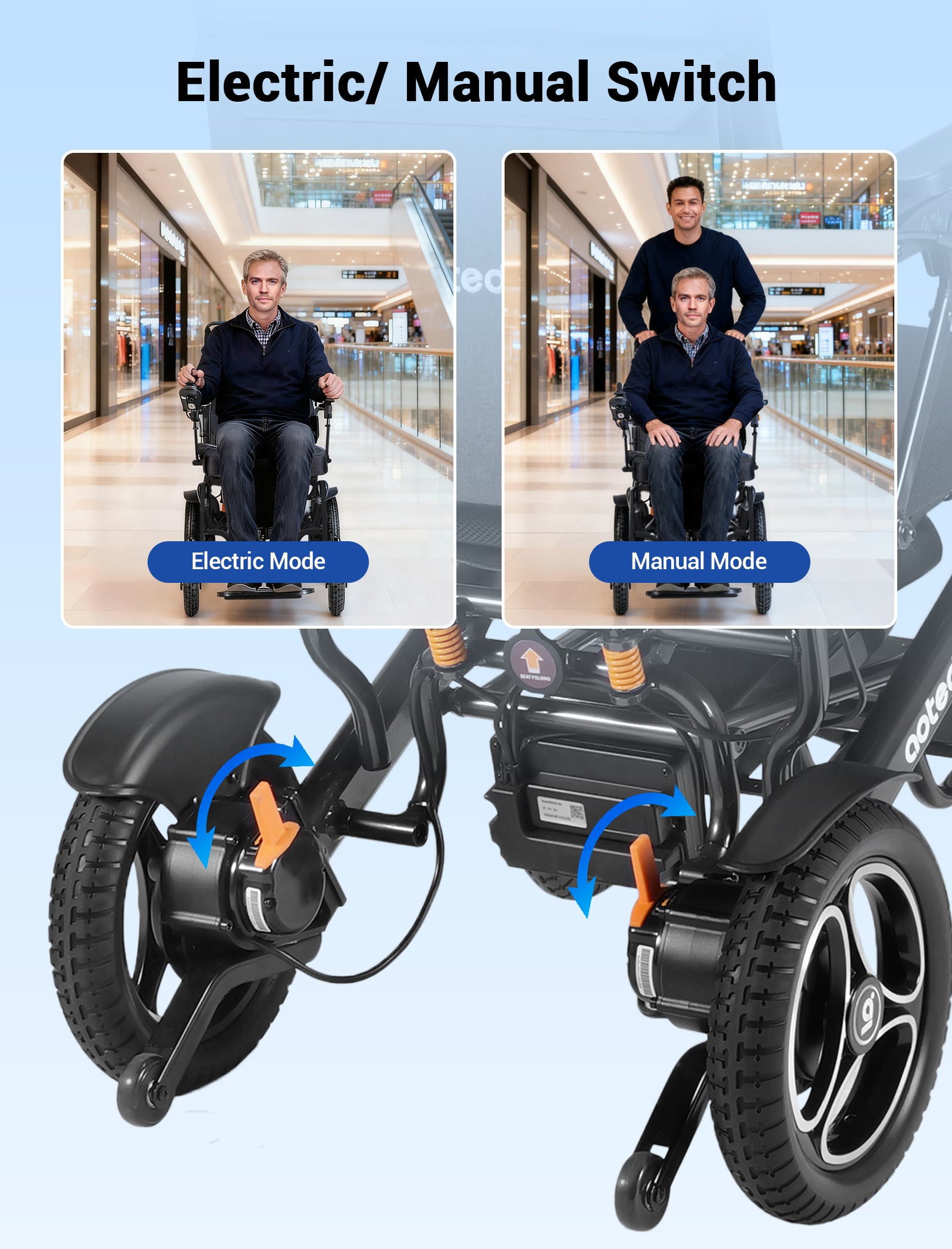 Aotedor-5526 Electric Wheelchair for Adults, Dual Battery (20AH Long Range & 10AH Air Travel Safe),300 lbs Weight Capacity, 35 Miles Range, Airline Approval & 500W Brushless Motors& LED Light (Black)