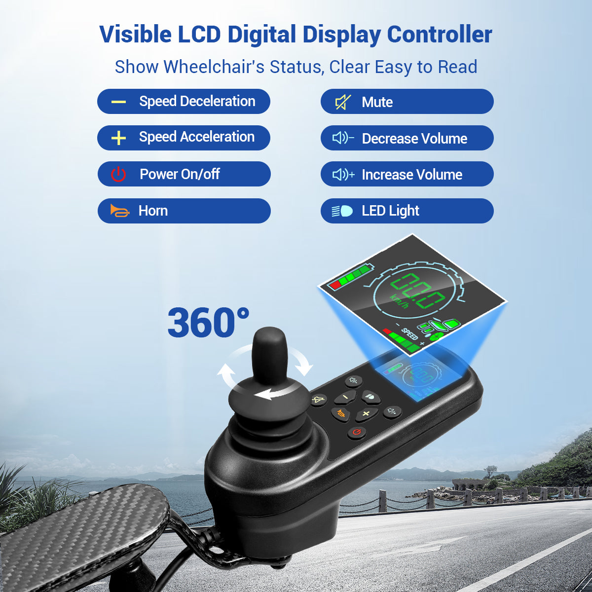 Effortless control & Maneuverability:Our foldable electric wheelchair is simple to control and maneuver, equipped with a responsive 360° joystick and user-friendly controls.35-inch small turning radius helps you pivot smoothly through in tight spaces or crowded areas. the motorized wheelchairs for seniors is seamlessly transitions between manual and electric modes, providing you with utmost flexibility.the electromagnetic brake reacts promptly and together plus two anti-tilt rear wheels design keep your safety.A clear lcd screen display shows all terrain wheelchair’speed, battery level, and status at a glance,easy to read,ideal for first-time users and everyday peace of mind